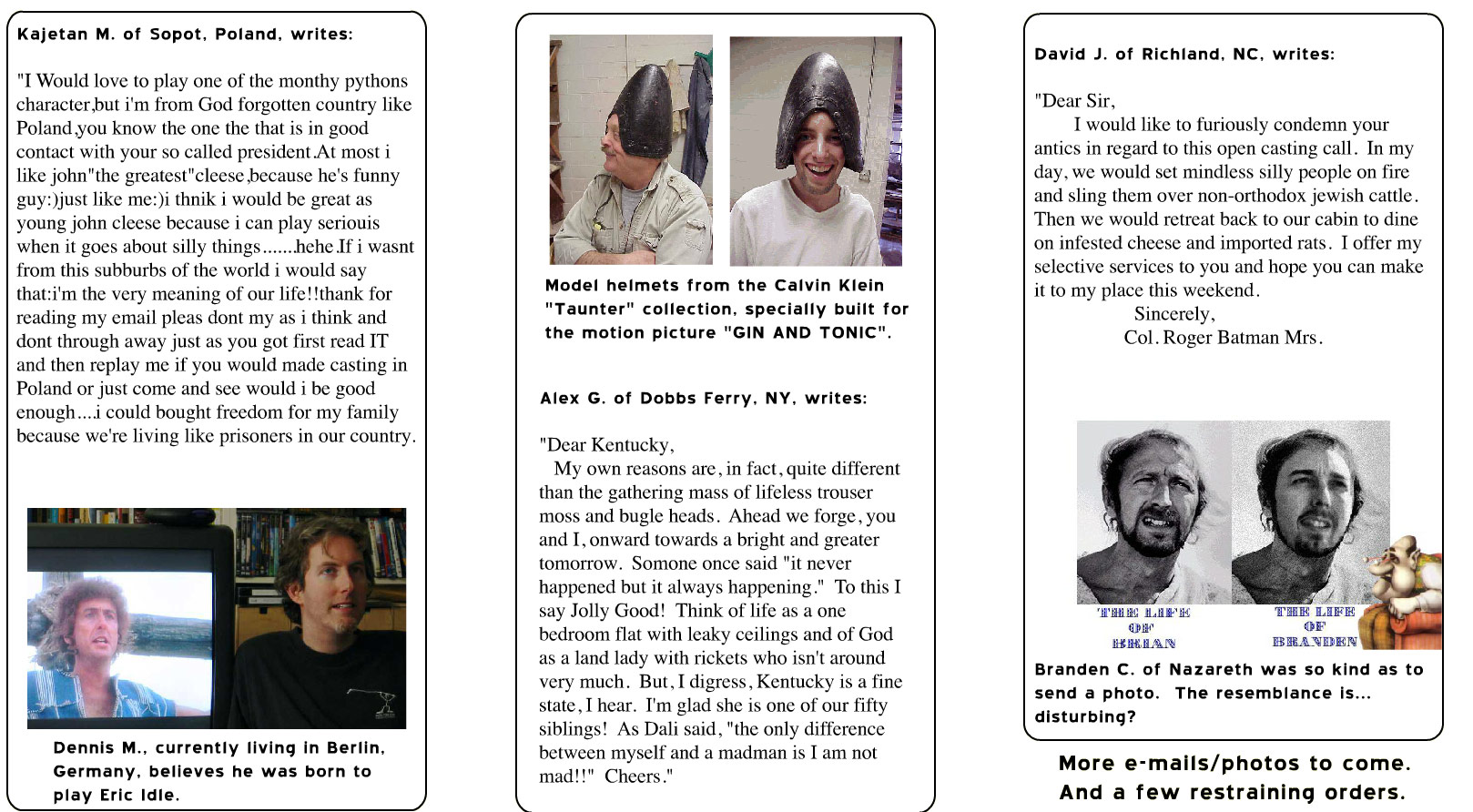 The GinAndTonicMovie.com site was more than a casting platform—it became an interactive fan community for Monty Python enthusiasts worldwide. Submissions poured in from Poland, Germany, the U.S., and beyond, with hopefuls sharing eccentric, humorous, and heartfelt emails about their dreams of embodying the Pythons.